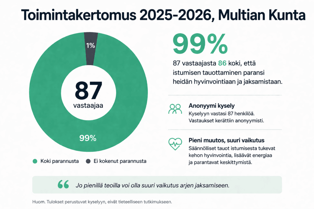 Päivittäin toistuvien ja pitkäkestoisten istumajaksojen ja muun paikallaanolon on todettu lisäävän tuki- ja liikuntaelimistön ongelmia ja riskiä sairastua useisiin pitkäaikaissairauksiin, kuten tyypin 2 diabetekseen, sydän- ja verenkiertoelimistön sairauksiin ja masennukseen.